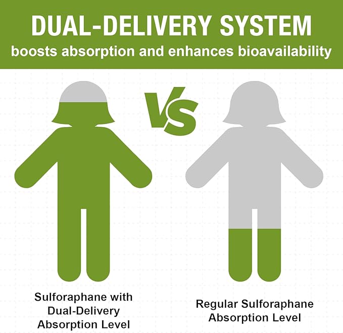 - REVOLUTIONARY DUAL-DELIVERY SYSTEM: Experience the unique benefits of our sulforaphane supplement that uses a dual-delivery system. Each softgel contains a microbeadlet of water-soluble full-spectrum broccoli extract and a matrix of oil-soluble liposomal sulforaphane, ensuring optimal absorption and potency. Advanced Dual-Delivery creates a protected formula that results in better absorption. This innovative system breaks new ground in the field of nutritional supplementation
