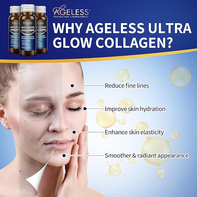 Ageless Ultra Anti Aging Liquid Collagen for Men & Women, Marine Collagen, Turmeric, Glutathione, and Rosa Roxburghii, Multi Vitamins, Skincare, Hydrating & Revitalizing Formula - 50 ml (10 Count)
