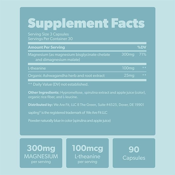 - Magnesium Complex: 300mg of elemental magnesium sourced from chelated magnesium bisglycinate and dimagnesium malate, formulated for enhanced absorption and bioavailability.* Sapling Magnesium Complex does not contain less bioavailable forms like magnesium oxide.