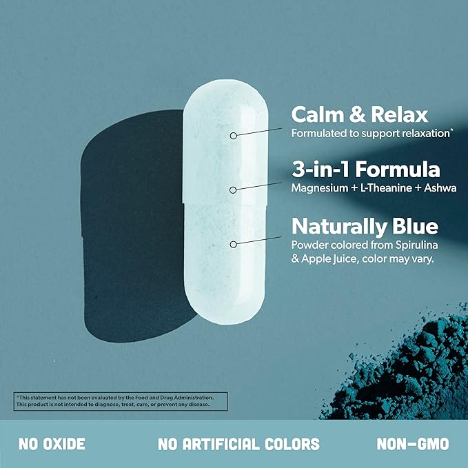 Magnesium Glycinate Complex Supplement - Chelated Magnesium Glycinate with Malate, Organic Ashwagandha, L-theanine & Blue Spirulina - High Absorption, Vegan, Non-GMO, 300mg, 90 Veggie Caps