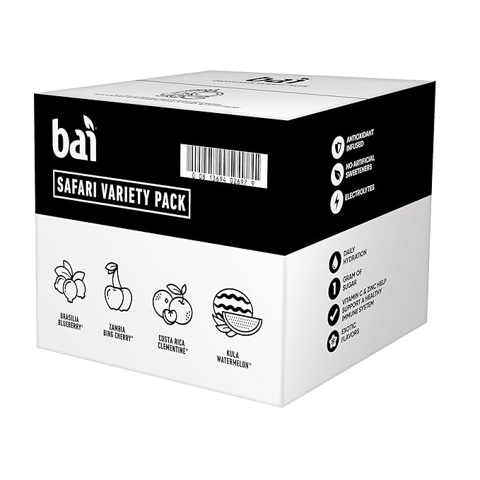 Bai Flavors Variety Pack, Antioxidant Infused Water Beverage, with Vitamin C and No Artificial Sweeteners, 18 fl oz bottles, 12 pack