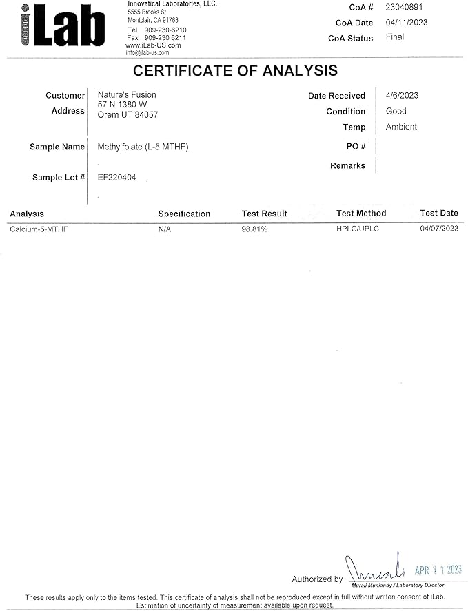 - 120 SERVINGS: Each bottle of our premium 5-MTHF supplement contains a generous supply of 120 vegan tablets, providing you with long-lasting support. Vegan-friendly and free from any animal-derived ingredients, our tablets are carefully crafted to cater to your specific dietary preferences while offering maximum efficacy.
