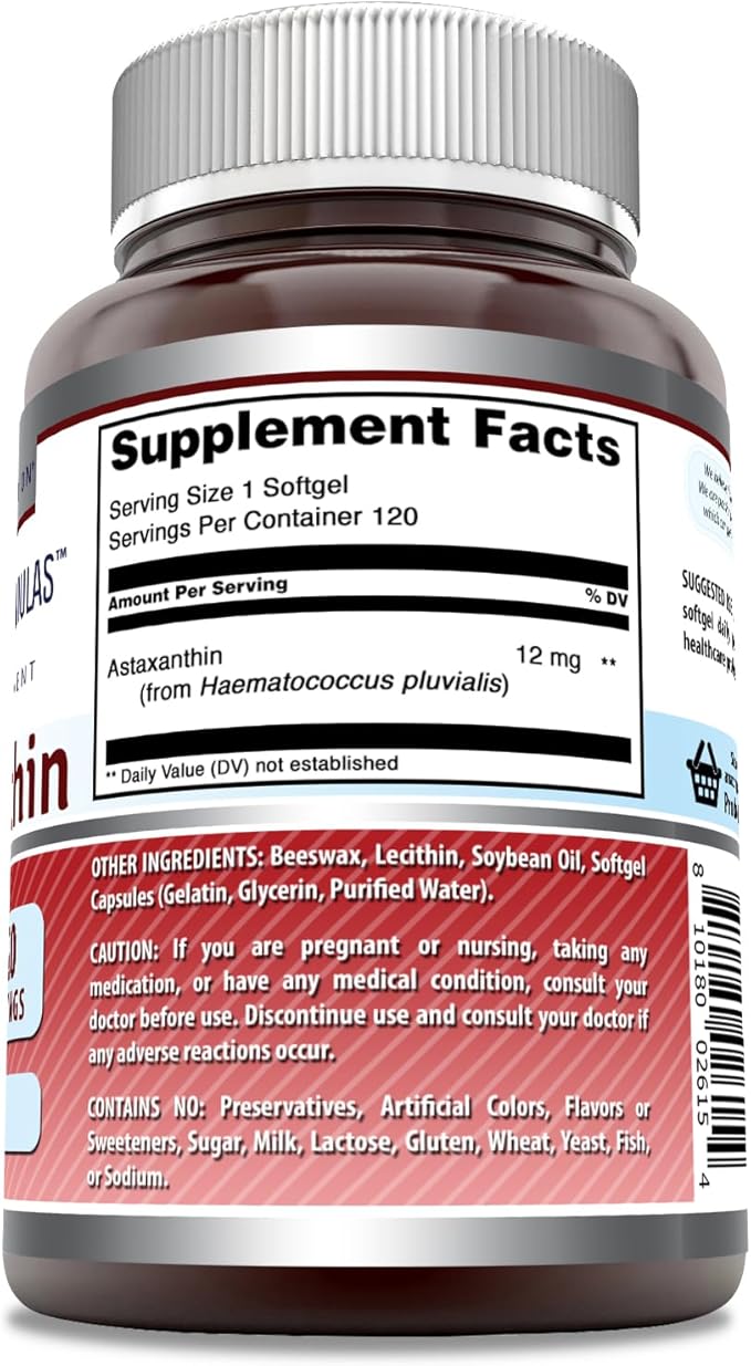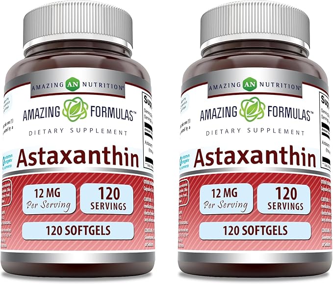 Amazing Formulas Astaxanthin 12mg Softgels Supplement | Non-GMO | Gluten Free (120 Count | 2 Pack)