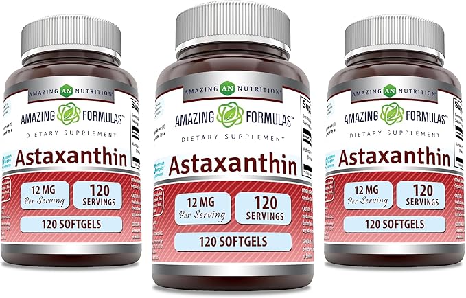 Amazing Formulas Astaxanthin 12mg Softgels Supplement | Non-GMO | Gluten Free (120 Count | 3 Pack)