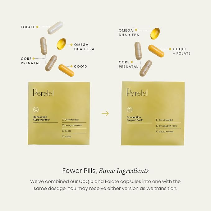 Perelel Conception Support Pack, Prenatal Multivitamin with DHA Omega 3, COQ10 & Folate, Supports Fertility Wellness for Women, Soy & Gluten Free, Non GMO, 30 Daily Pill Packs