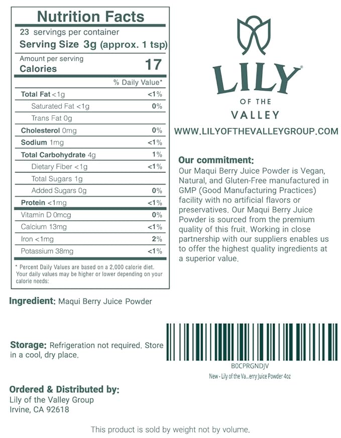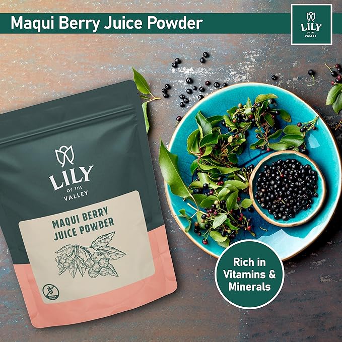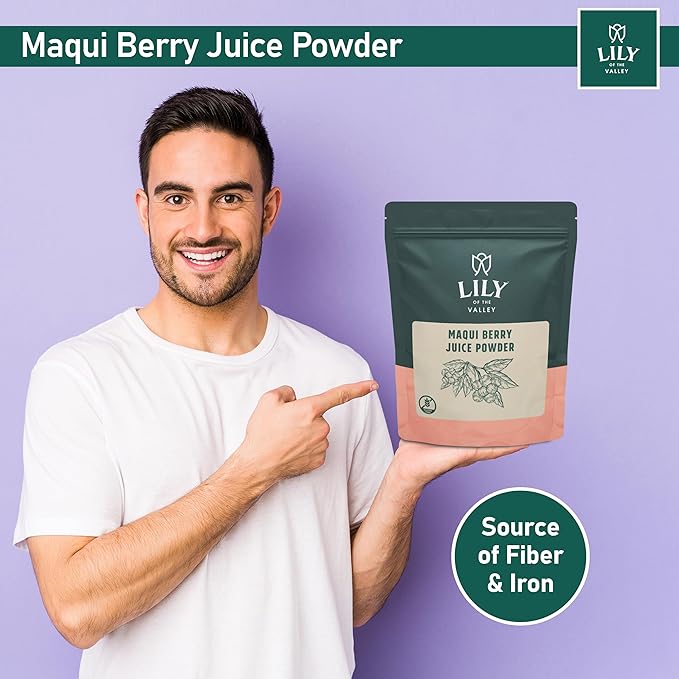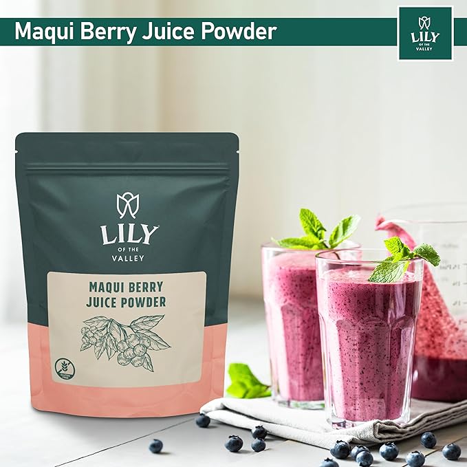 Lily of the Valley Maqui Berry Juice Powder - Antioxidant-Rich Superfood for Smoothies & Desserts - Rich in Iron & Fiber - No Added Sugar - Vegan & Gluten-Free - Packed in Resealable Pouch (8oz, 226g)
