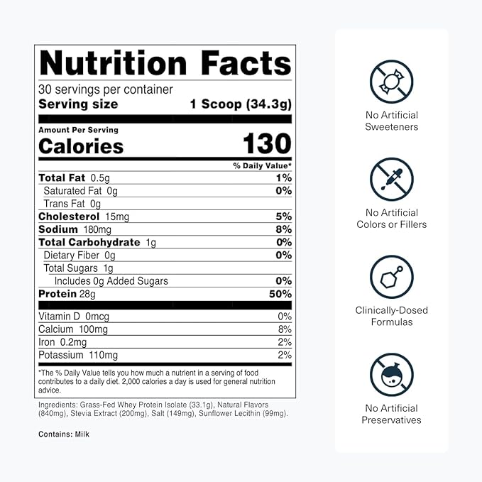 - 28g of Protein Per Serving: Transparent Labs Whey Protein Isolate is sourced from 100% grass-fed, grass finished American dairy cattle. It contains one of the industry’s highest protein-by-weight ratios, and packs 28g of protein per serving with minimal sugar or fat.