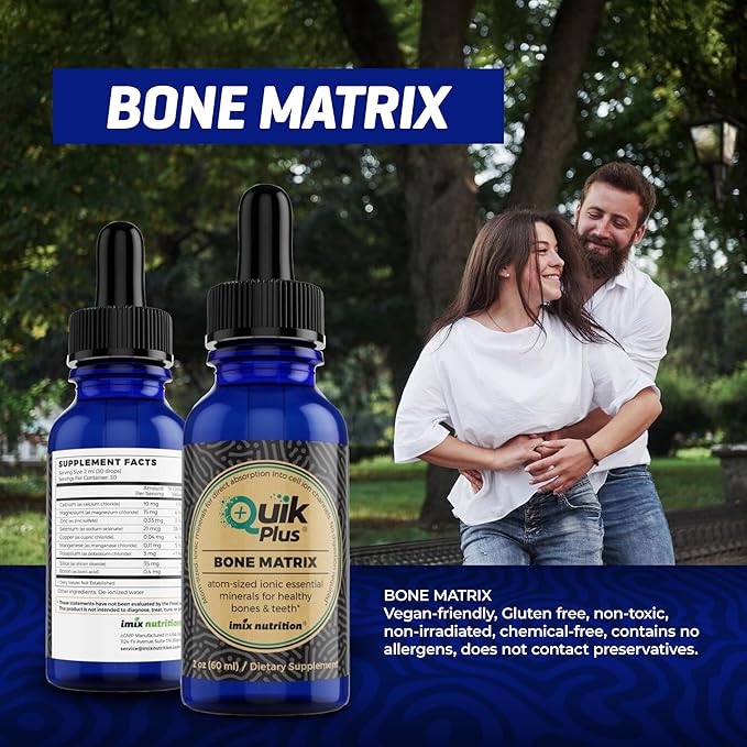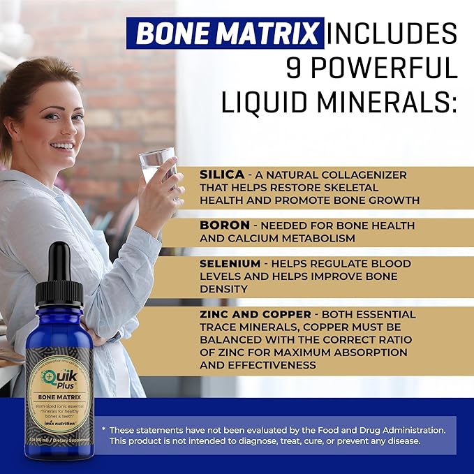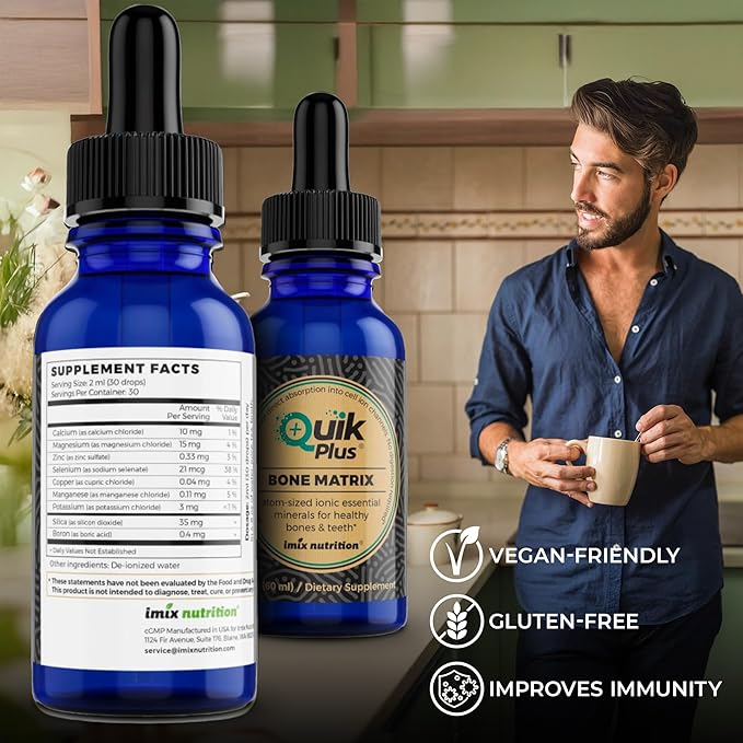 QuikPlus Bone Matrix with Calcium, Magnesium, Zinc, and Potassium - Includes 9 Ionic Liquid Minerals, Collagenizer for Bone and Teeth Support, Vegan, Gluten-Free, All Natural (2 Oz)