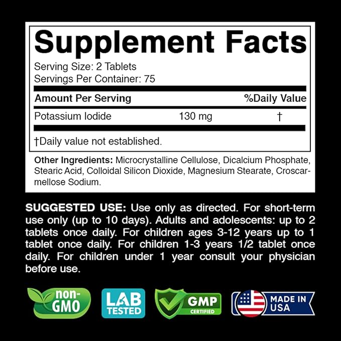 Potassium Iodide Dietary Supplement 130 mg per Serving - 150 Tablets (1 Bottle) - Exp 10/2028