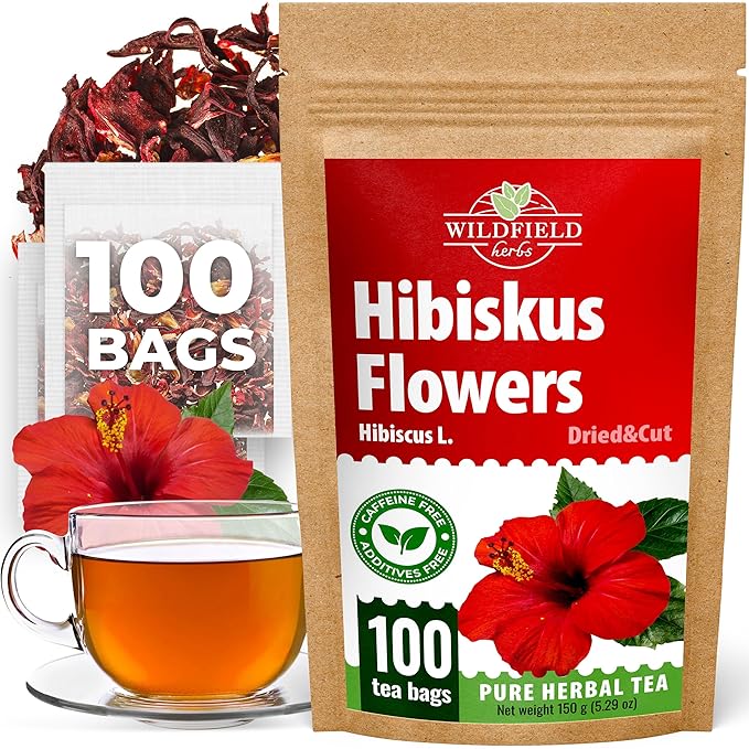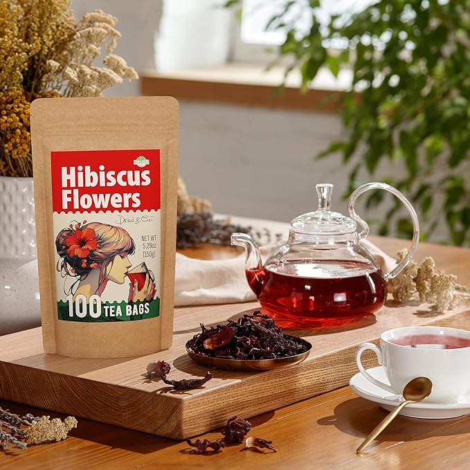 100 Bags Dried Hibiscus Flower Tea Herbal Flor De Jamaica (Hibiscus) - 100 Count 1.5g Tea Bags Dry Dried Hibiscus Flowers Herb Hibisko