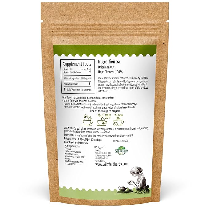 50 Bags Hop Tea Hops Herb Dried Hops Flowers Herbal Tea (Humulus Lupulus) - 50 Count 1.5g Bags Hoptea Lupulo Entero