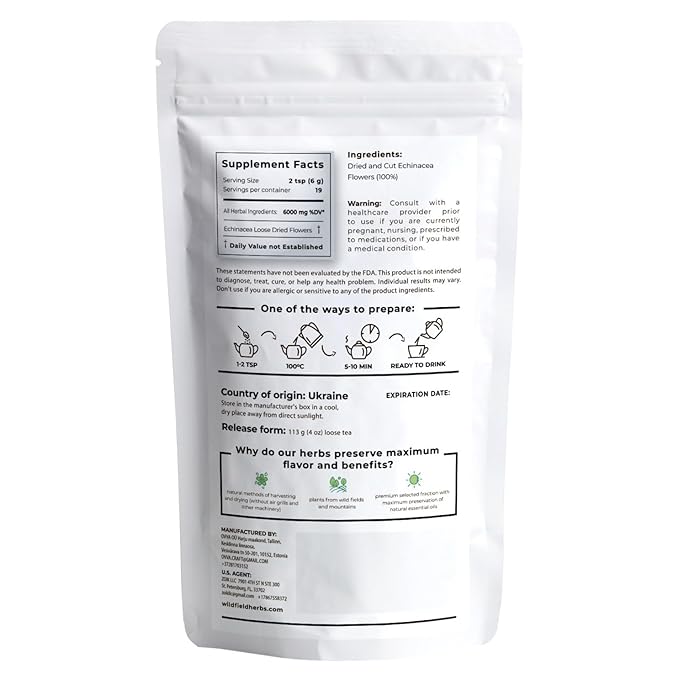 - Weight: 4 oz (113 g). These Echinacea Herb have been grown, carefully harvested, specially dried and specially packaged to ensure that they reach the customer in the freshest and most fragrant condition.