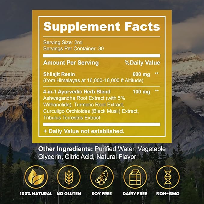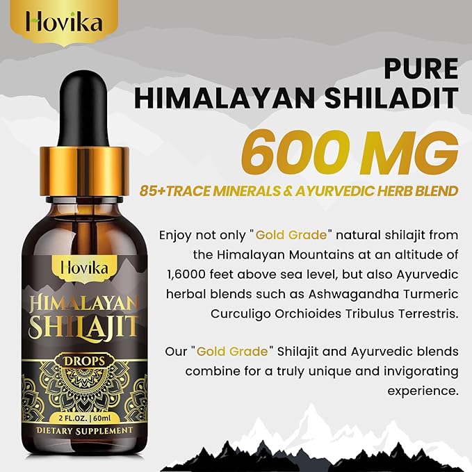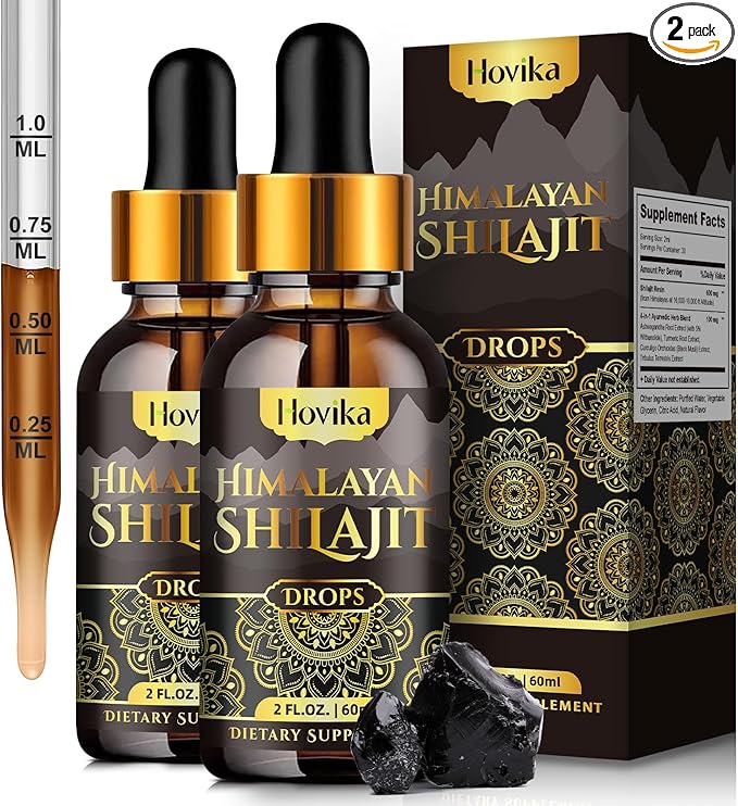 - EASY TO USE: Hovika shilajit liquid drops are formulated to provide 700 mg per serving, including natural shilajit resin 600 mg, and 4 in 1 Ayurvedic Herb Blend 100 mg. Our Shilajit Oil comes in a convenient dropper bottle, making it effortless to incorporate into your daily routine. Simply dissolve 2ml in warm water or your favorite drink to take control of your wellness or as directed by your physician
