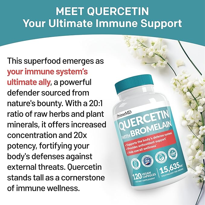 - Who Is This For? - Our quercetin with bromelain supplement is meticulously crafted for individuals seeking to elevate their well-being and the body’s protective functions. Tailored specifically for seniors, frequent travelers, individuals with compromised immune systems, and those navigating external stressors, this supplement provides personalized assistance to accommodate diverse lifestyles.