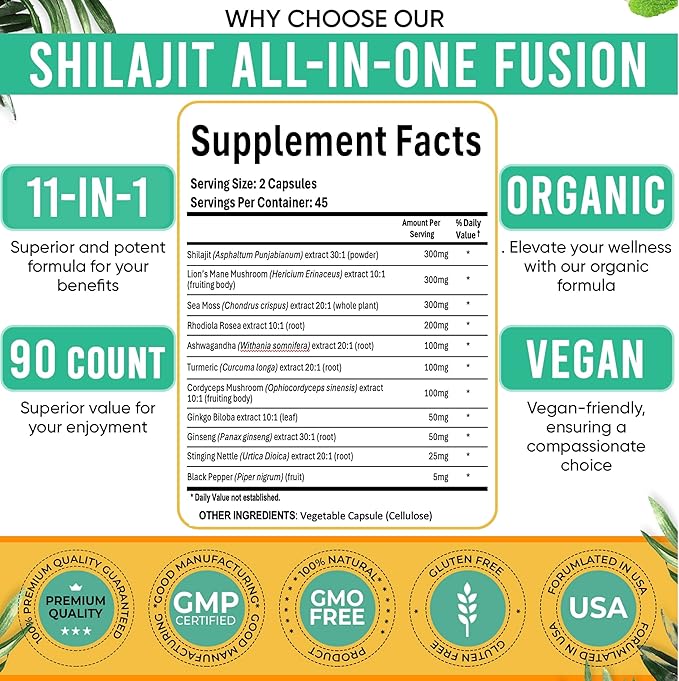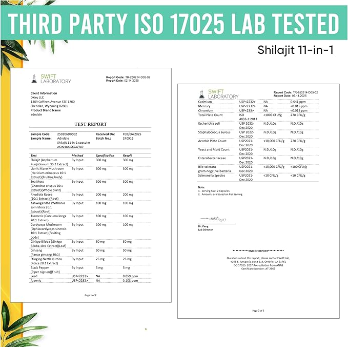 - QUALITY TESTED: Third-party ISO 17025 laboratory-tested supplement ensuring premium quality and purity. Adndale Shilajit for Women & Men 11-in-1 Supplement shilajit capsules are vegan and do not contain gelatin