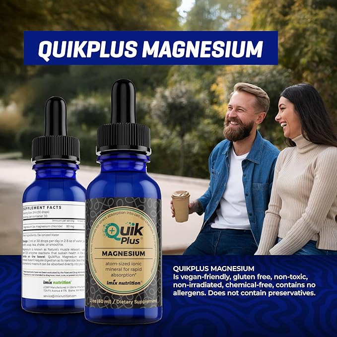 QuikPlus Liquid Mineral Supplement for Adults – Vegan, Gluten-Free, All Natural, Highly Bioavailable – 2 oz Bottle (Magnesium)
