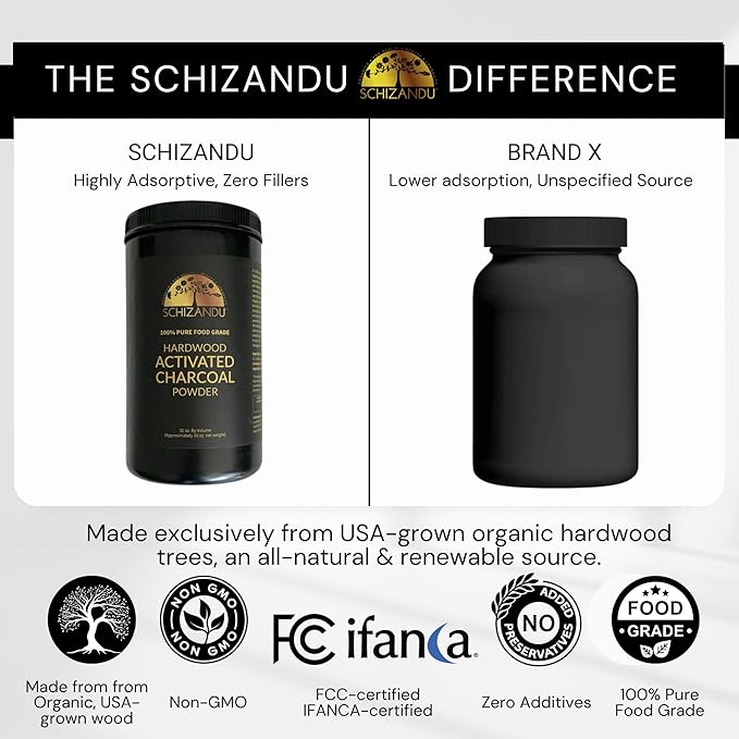 Activated Hardwood Charcoal Powder by Schizandu Vegan 100% | Supports Skin, Body, Teeth Whitening 2-Packs