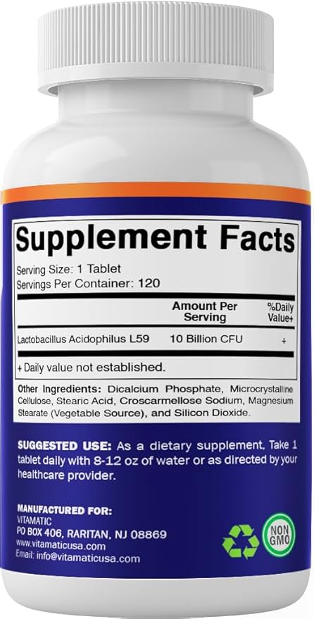 Vitamatic Acidophilus Probiotic - 10 Billion CFU - 5X Potency - Daily Probiotic Supplement, Supports Digestive Health - 120 Tablets