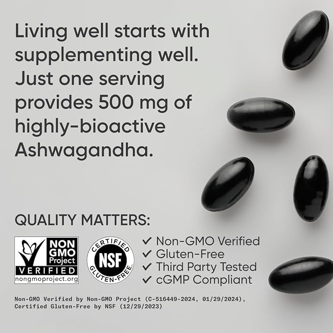 - Premium Quality: We hold all of our Ashwagandha to a higher standard. Our softgels are Vegan Friendly, non-GMO Verified and free of unwanted fillers, carrageenan, gluten, and soy. Each batch is third-party tested for quality and manufactured in the USA in a cGMP-compliant facility.