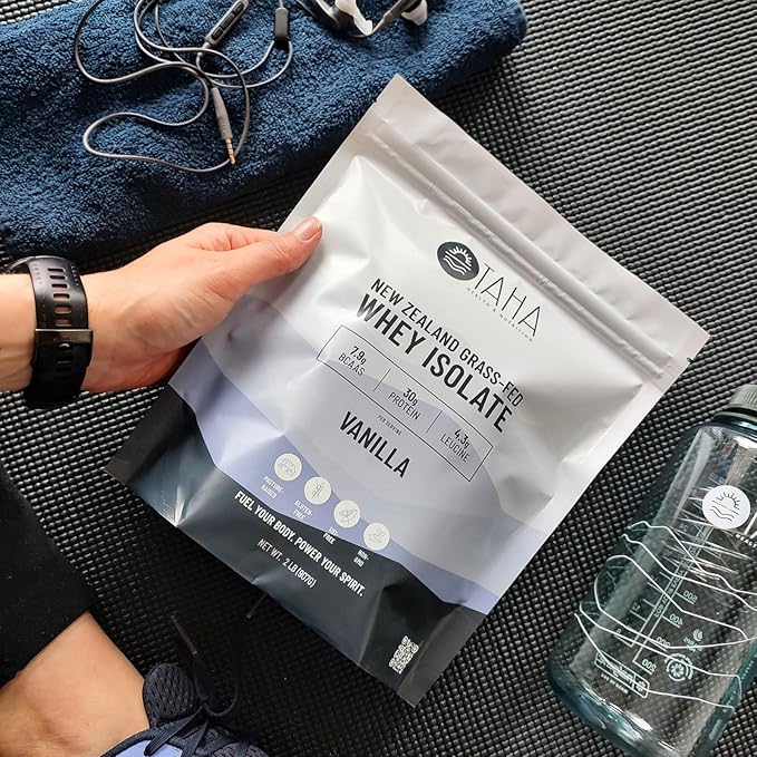 Taha Health & Nutrition Vanilla Whey Protein Isolate Powder, 30g Protein, 7.9g BCAAs, 4.3g Leucine | New Zealand Free-Range, Grass-Fed Dairy | Gluten-Free, Keto, Kosher | 2LB, 25 Servings