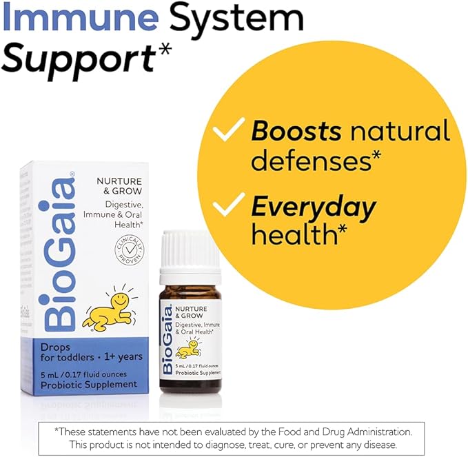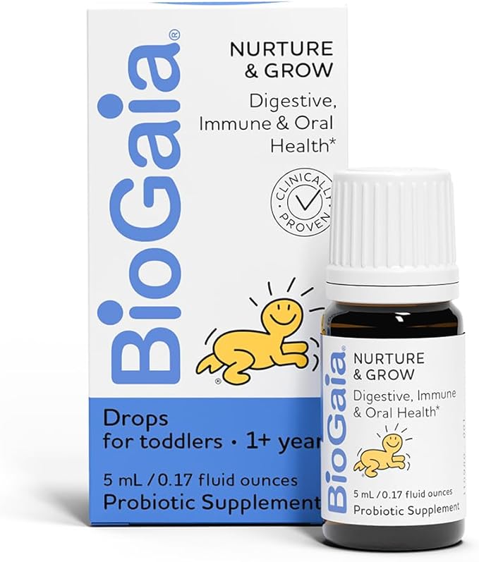 - NATURALLY EASES DIGESTIVE DISCOMFORT: Formulated with the same reliable BioGaia probiotics you know and trust. Nurture & Grow works naturally in the digestive system to ease children’s occasional digestive discomfort and promote regularity.