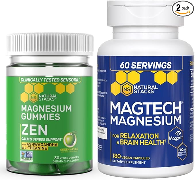 Natural Stacks Magtech Magnesium + Zen Magnesium Gummies Bundle - 4 Forms of Magnesium - Supports Brain Health & Stress Relief* - 210 Pieces