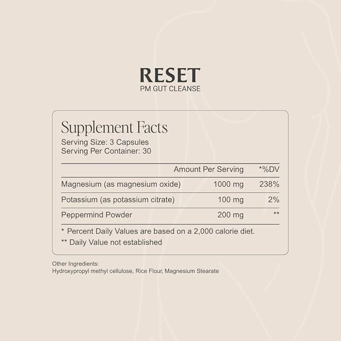 - A RESTFUL CLEANSE: Revitalize your gut health while you sleep with Reset. Our formula helps combat bloating, promoting a fresh, light feeling so you can sleep deeply and wake up with renewed energy.