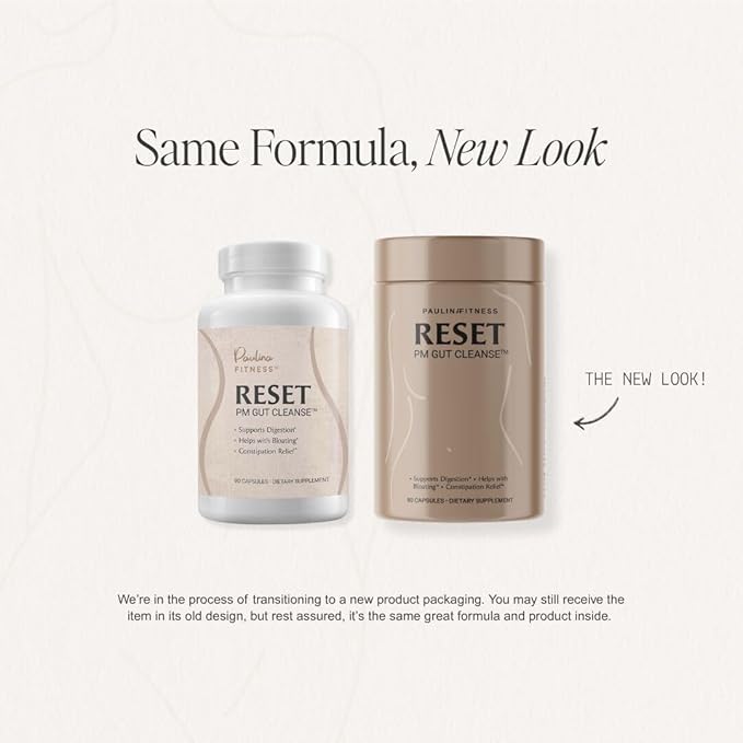 Paulina FITNESS Reset Overnight Digestive Aid, Bloating Relief, & Gut Health Supplement | Natural Detox & Digestive Cleanse to Support Weight Management and Relieve Constipation | 90 Capsules
