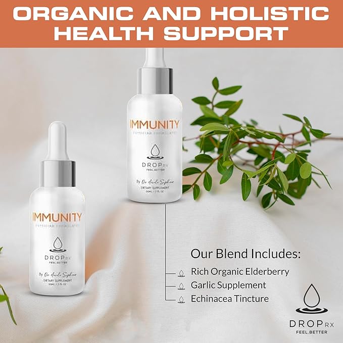DropRx Immunity by Dr. Nicole Saphier – Elderberry, Echinacea & Garlic Supplements for Immune System Support, Organic, Non-GMO, Vegan, Gluten-Free, Kosher, Made in USA (2 Fl Oz)