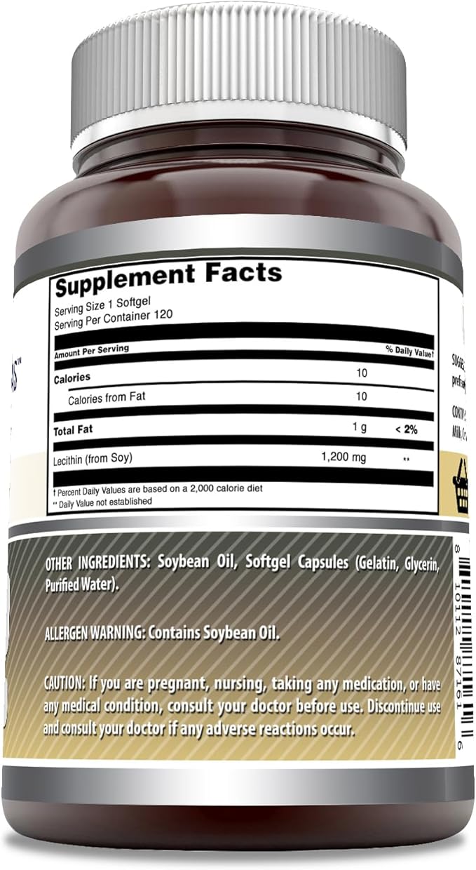 Amazing Formulas Lecithin 1200 mg Softgels Supplement | High Potency | Non-GMO | Gluten Free (1 Pack, 120 Count)