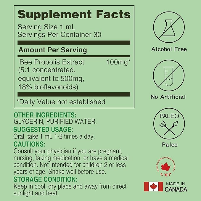 - 【FLAVOR OF THE NATURE】Savor the authentic taste of our Canadian-sourced Propolis Extract, capturing the essence of nature.