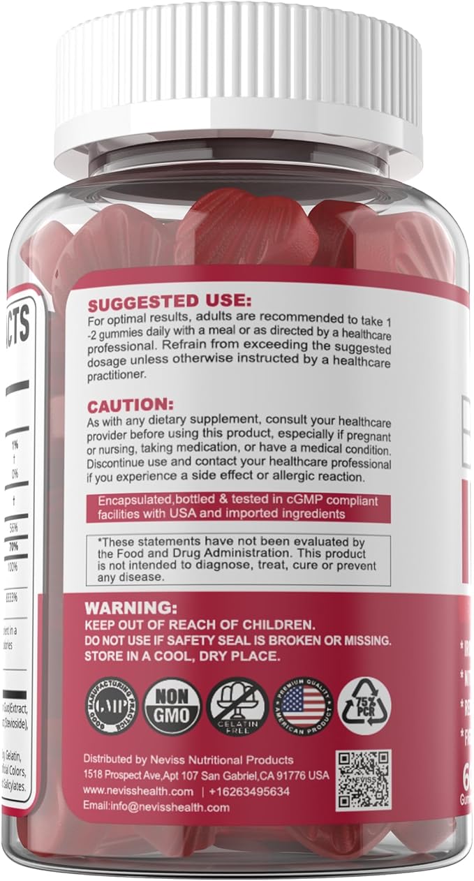 - 【Increase Iron Levels】Iron is essential for the production of hemoglobin, a protein in red blood cells that transports oxygen to the body's tissues and organs, which helps blood flow and energy production. Neviss iron supplement, in carbonyl iron form, boasts over 98% iron content, ensuring easy absorption and utilization by the body. Just one gummy daily can effectively boost and maintain your iron levels for optimal health!
