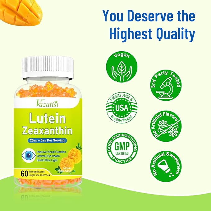 - [ Lutein and Zeaxanthin Gummies ] Lutein and zeaxanthin are powerful antioxidants that promote eye health, 2 Gummies a day you will get 25mg lutein, 5mg zeaxanthin, bilberry, and more, which play a key role in healthy vision.