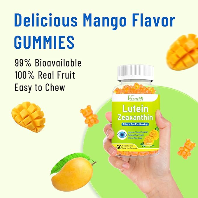 - [ Sugar Free, Vegan & Pectin-based ] No hard to swallow pill or nasty ingredients, This fun and delicious mango Flavor lutein gummies make you wonder if they're a eye vitamin or a snack. Vegan, Gluten-Free, Gelain-free, Non-GMO. Ideal for adults looking for eye support.