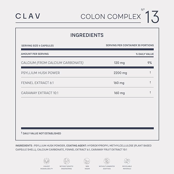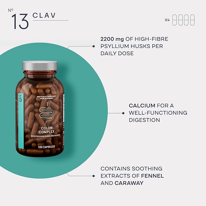 - SYNERGISTIC BLEND FOR OPTIMAL DIGESTIVE SUPPORT - The combination of caraway and fennel extracts with psyllium husk fiber in our N°13 Colon Complex offers a more comfortable digestion experience. This blend helps support the well-functioning of the digestive system and assists in alleviating digestive discomfort, setting a new standard in fibre supplements.