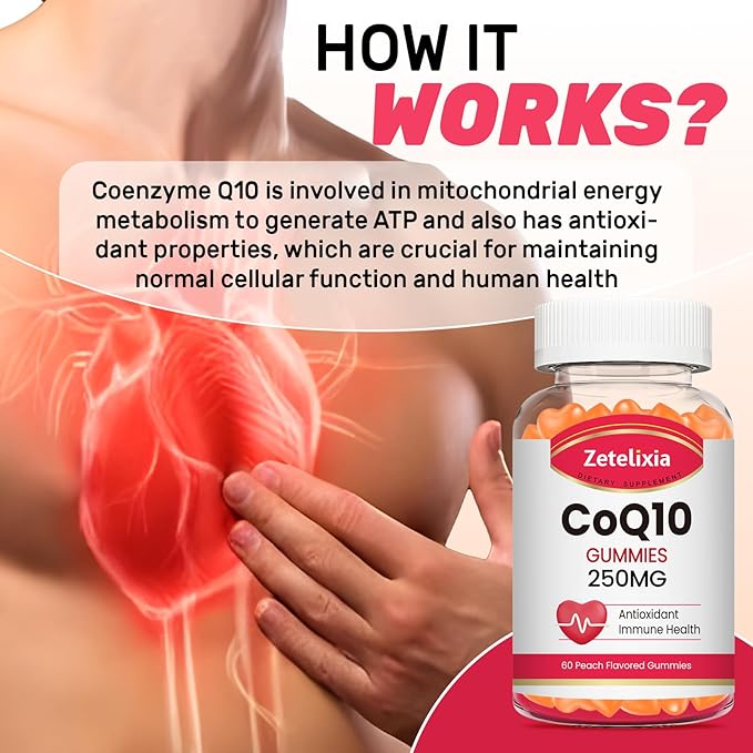 - Support Overall Health: CoQ10 is a natural coenzyme that helps the body convert fats and sugars into cellular energy. Our CoQ10 Gummy help increase muscle energy, making it easy for muscles to contract efficiently. Reduce fatigue, You'll feel energized, focused and stronger adapt-stress ability to complete a full day's tasks quickly and efficiently