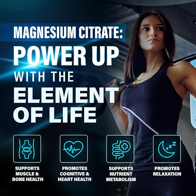 - Ultra-absorbable Magnesium Citrate: Discover the wide range of benefits of our premium formulation of magnesium, boasting over 300 functions throughout the body for holistic well-being. This dynamic capsule doesn't just boost muscle function and nurture gut health; it also offers relief from occasional constipation, bolsters bones and joints, and fortifies the heart.