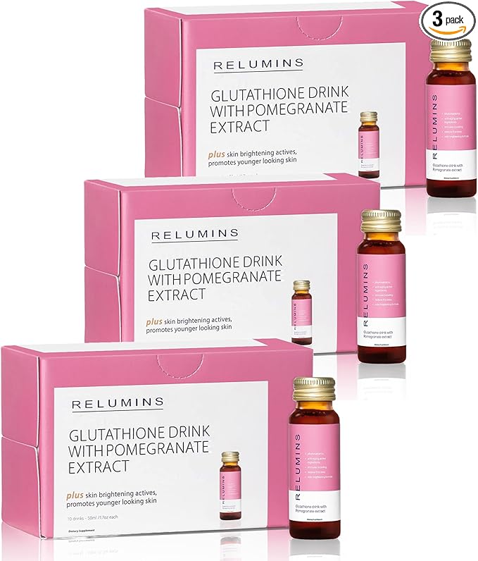 - Deep Hydration for Summer-Ready Skin: Designed to help replenish moisture from within, Relumins Glutathione Hydration Shots are perfect for summer months when sun exposure and heat can leave skin feeling dry and dehydrated. This pomegranate-flavored beauty drink supports lasting hydration and suppleness, helping you maintain a fresh, dewy glow all season long.