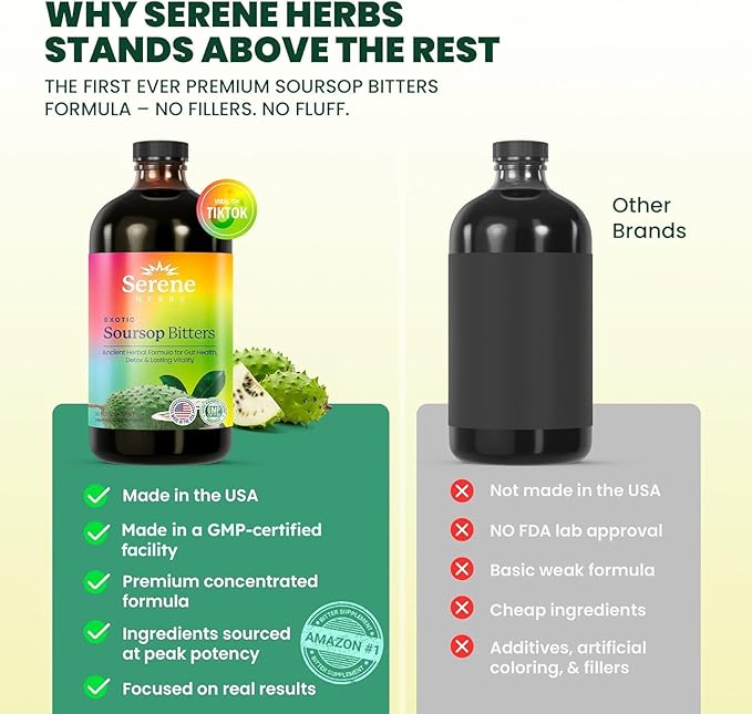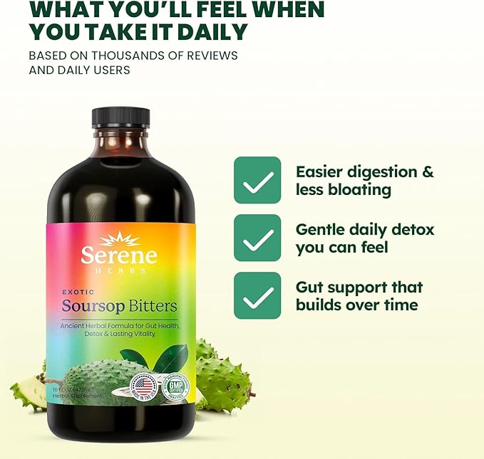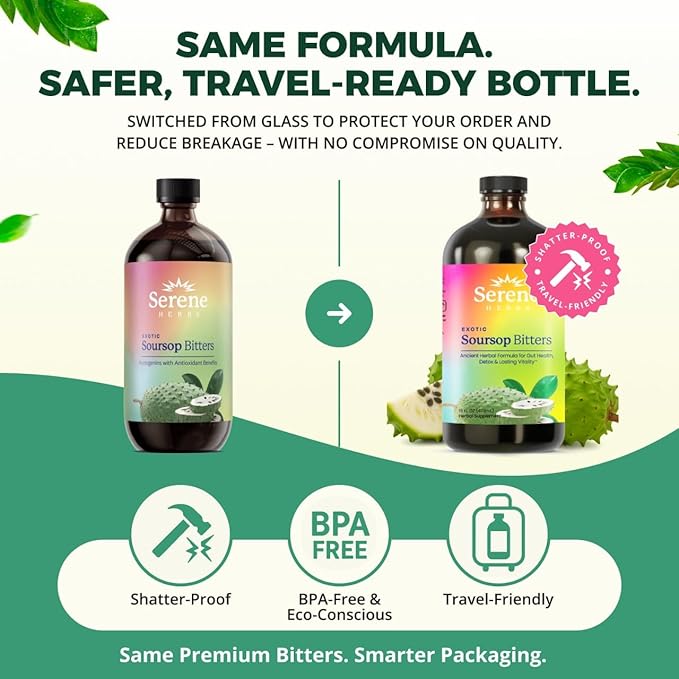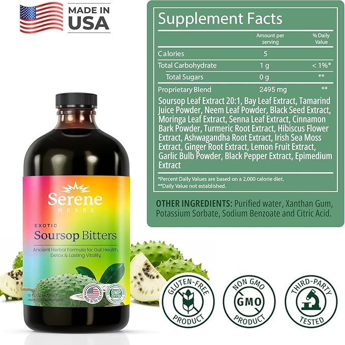 - CONVENIENT & EASY TO USE – With 16 fl oz and 32 servings per bottle, Soursop Bitters Liquid offers a simple and convenient way to incorporate powerful herbs into your daily routine. Perfect for those seeking an easy addition to their wellness regimen
