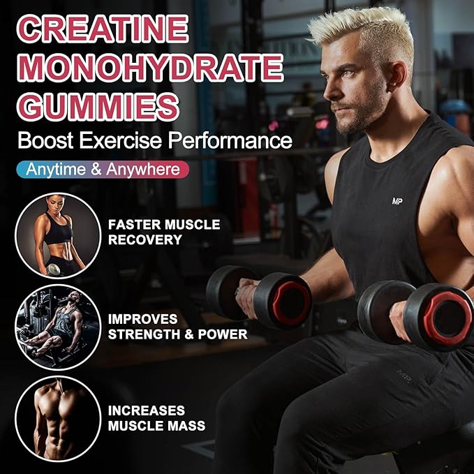 - 【Key Benefits】Our Creatine monohydrate gummies are an easy way to consume, 2 gummies per serving, you can take it at any time & anywhere. It increases muscle strength, muscle recovery, improve endurance and energy boost. Suitable for a variety of users, and enjoyable taste.