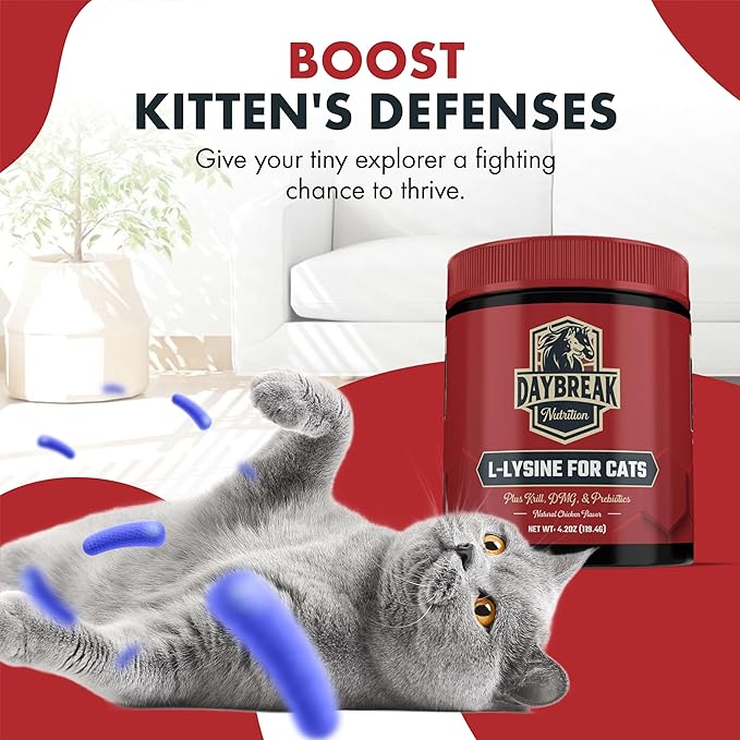 L-Lysine for Cats and Kittens - 900 mg L Lysine Powder for Cats for Immunity & Respiratory Support - Cat Supplement with L-Lysine, Prebiotics, Krill, & DMG for Immune System, Eye Health & Sneezing