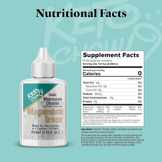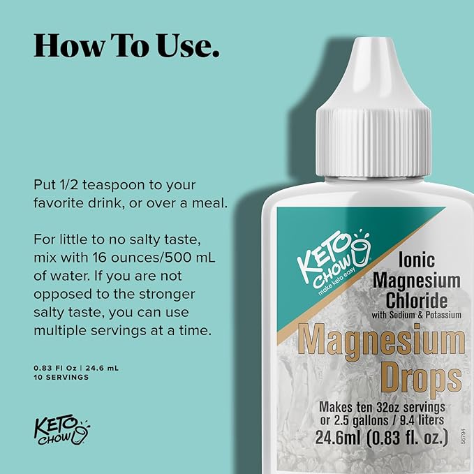 Keto Chow Ionic Magnesium Chloride Supplement Drops | Provides Magnesium, Eletrolytes & Trace Minerals The Body Needs | Sourced from Utah's Great Salt Lake | On The Go Container | 24ml Pocket Flask