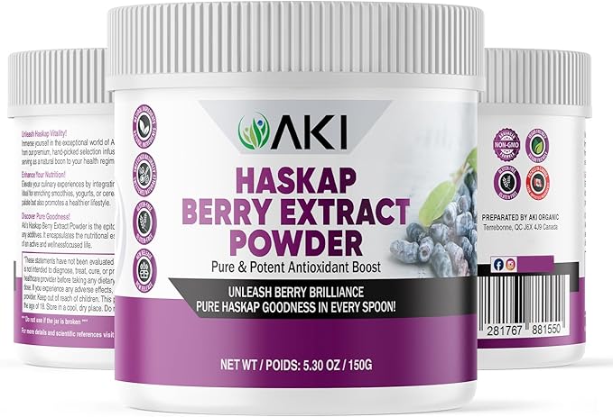 - Unleash the Power of Antioxidants: AKI Haskap Berry Extract Powder is sourced from superior-quality dried berries, ensuring a product with maximum potency. Packed with antioxidants, vitamin C, and polyphenols, our powder provides powerful support for overall well-being. It helps to maintain a balanced oxidative state in your body and prevents damage to cells. Contribute to a better you, both inside and out