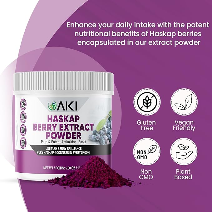 - Unleash Sustained Stamina: Tired of feeling exhausted and inefficient? This berry powder is an incredible source of energy that may help to overcome fatigue as well as improve overall vitality. AKI Haskap Berry extract provides a sustained energy boost, helps you feel revitalized and prepared to face any life challenge