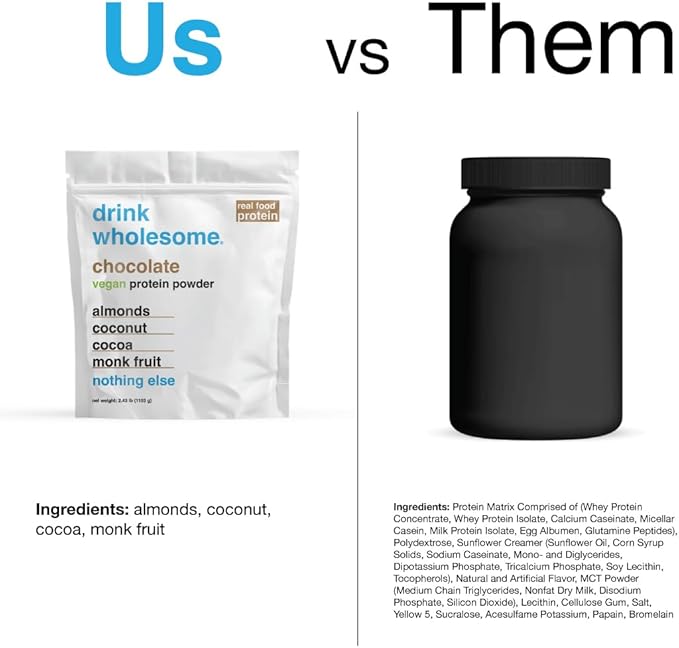 drink wholesome Vegan Chocolate Almond Protein Powder | for Sensitive Stomachs | Additive & Dairy Free | No Artificial Sweeteners | No Bloating, Farts or Gas | No Constipation or Diarrhea