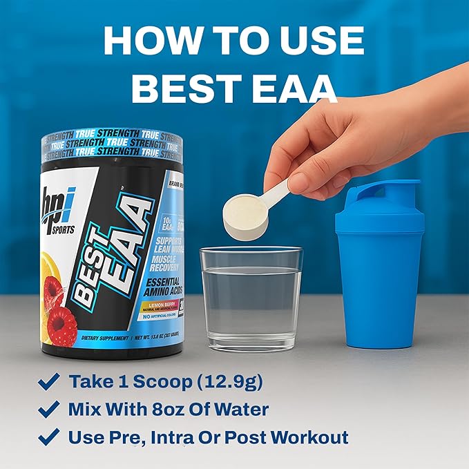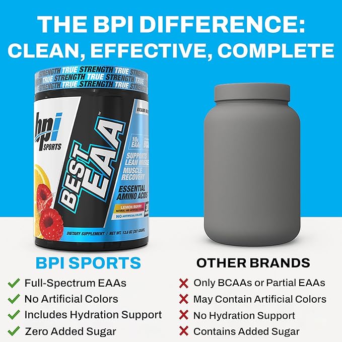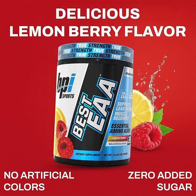 BPI Sports Essential Amino Acids EAA Powder - Pre, Intra & Post Workout Drink - BCAA Powder for Men & Women, EAA + BCAA + Hydration, Advanced Formula with 10g of EAA. (Lemon Berry)