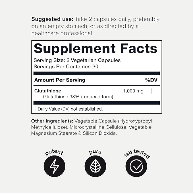 - Product Benefits : Glutathione supplement 1000mg - 98%+Pure Reduced Glutathione; 3rd Party Tested;