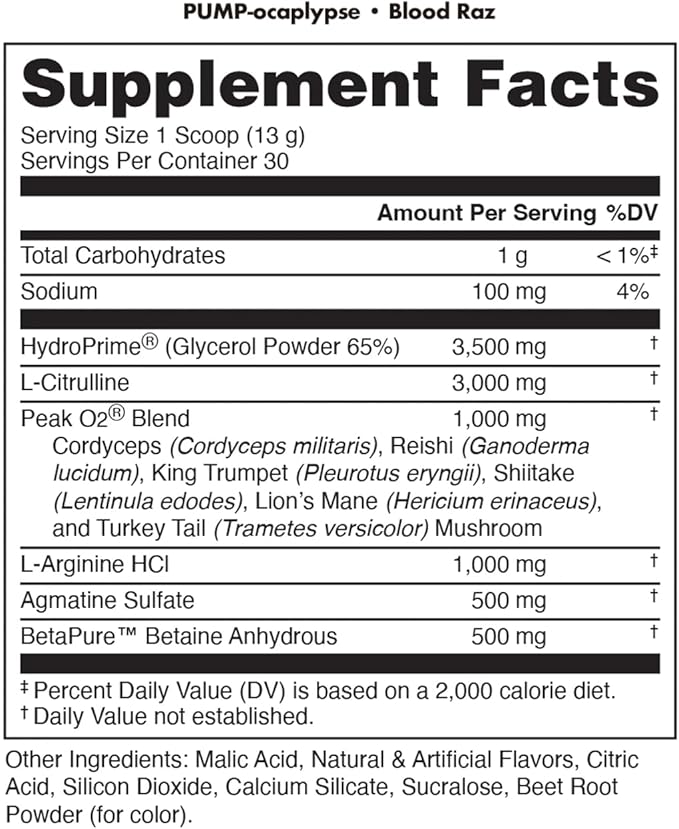 - SUPERIOR HYDRATION & ENDURANCE - With a perfect quantity of Betaine Anhydrous, Pump-ocalypse ensures sustained hydration and stamina, making it the ideal choice for athletes pushing their limits.