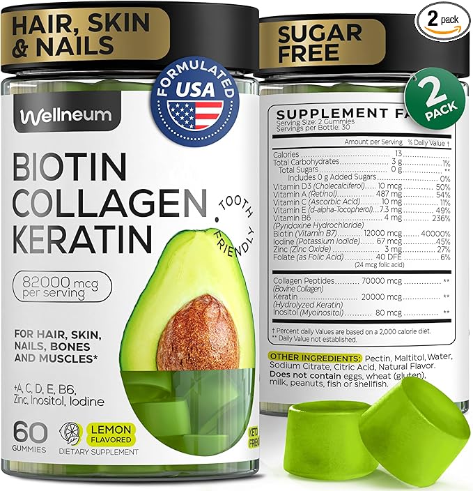 - Holistic Skin and Nails Support: our Biotin Gummies contribute to a beautiful skin, maintaining optimal hydration and oil balance; Keratin and Collagen support flexibility and strengthen nails.