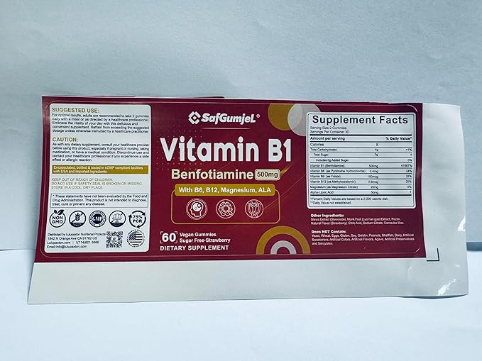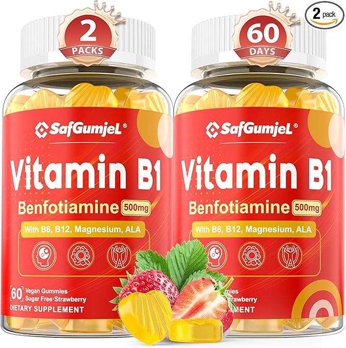 Vitamin B1 Gummies - Benfotiamine 500mg, Vitamin B1 B6 B12 Complex, Sugar Free, Non GMO, Vegan, 120 Counts